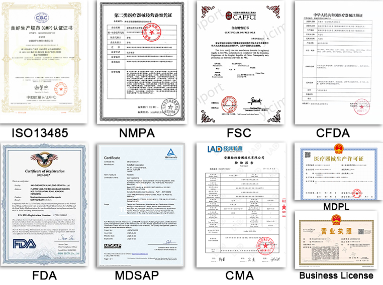 We are ISO900113485, FDA, CFDA, and MDSAP certified.